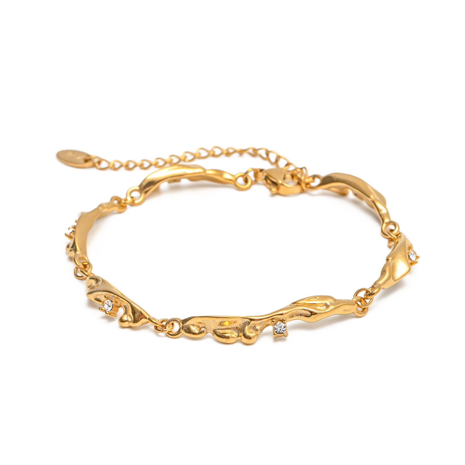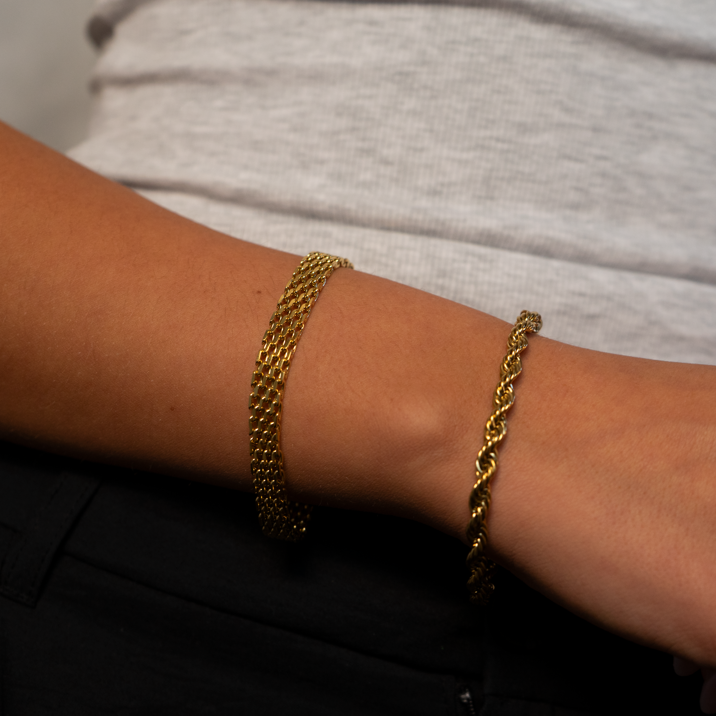 Made of stainless steel and plated with 18k gold, this stylish bracelet has an eye-catching ribbed texture that exudes elegance and modernity. A perfect choice for those who want a timeless piece of jewelery with an exclusive touch.